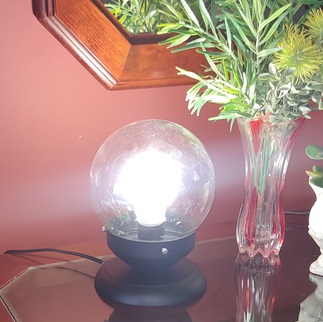 Abajur Bola de Cristal Cobre Com Esfera 10x15 Leitosa