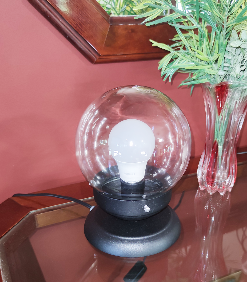 Abajur Bola de Cristal Preto com Esfera 10x15 transparente