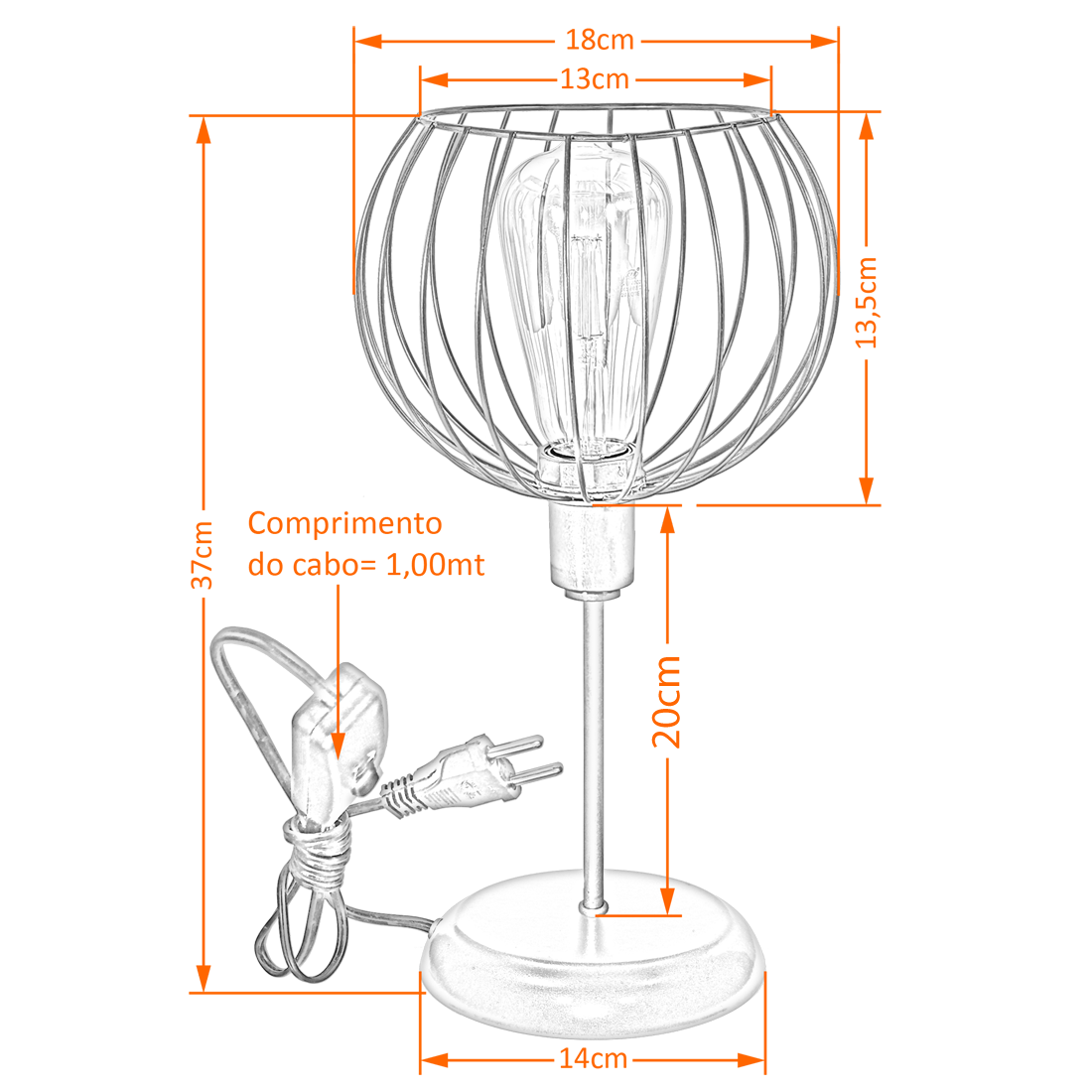Abajur Classico Aramado tangerine 2 Branco