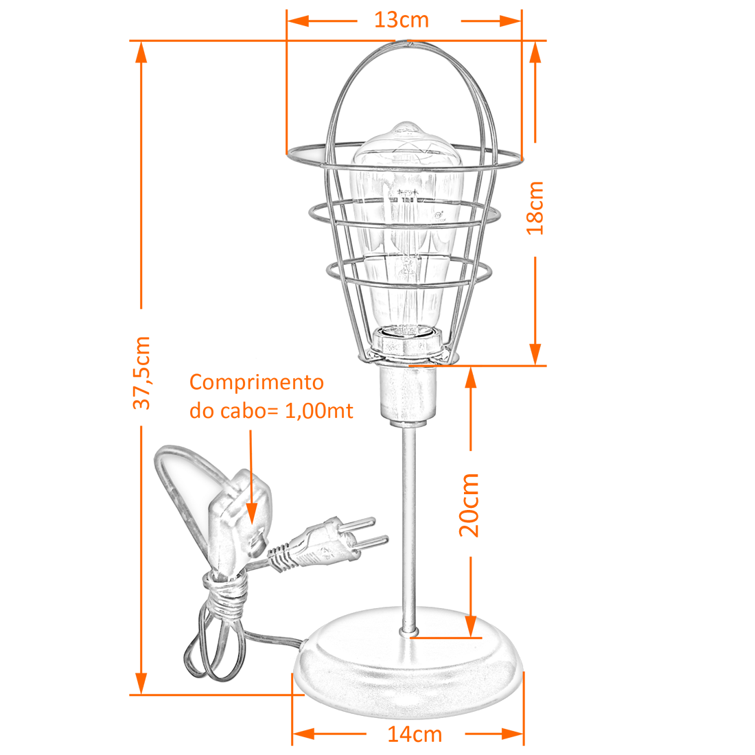 Abajur Classico Sem Aramado Preto Com Soquete Para Cupula