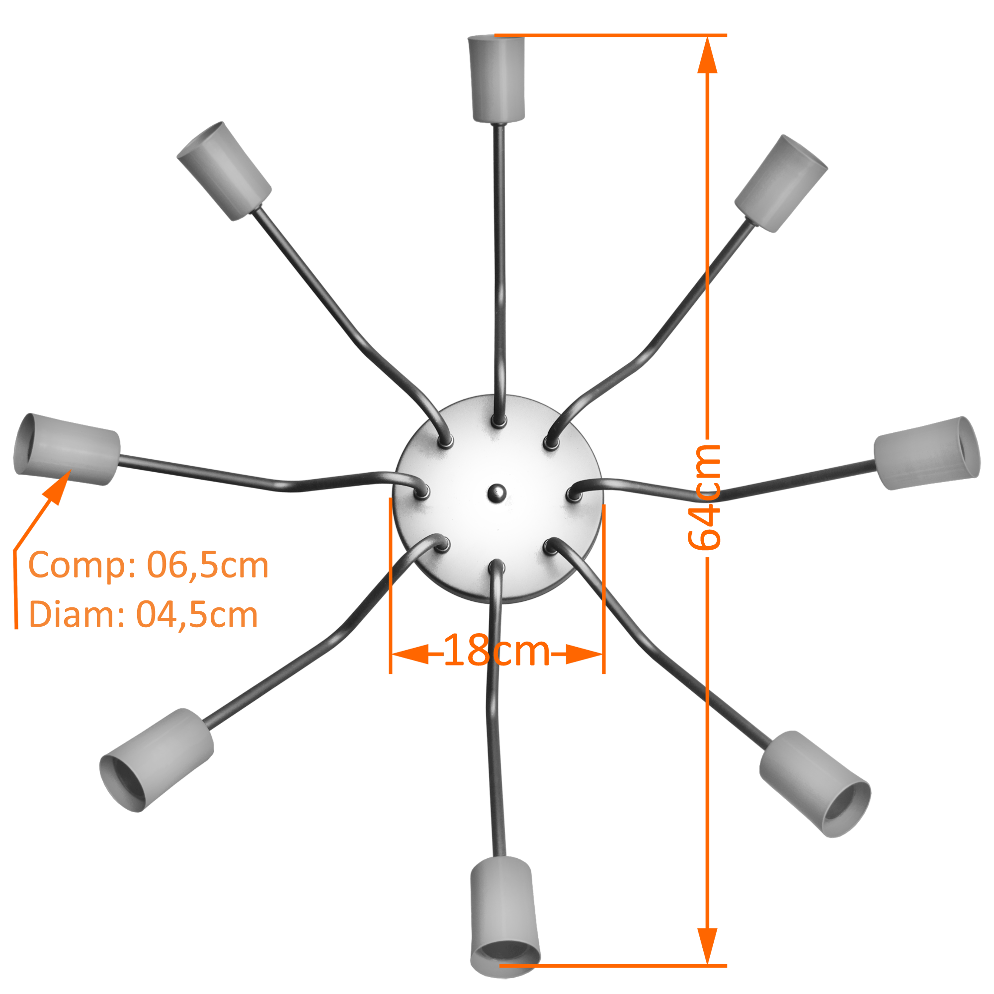 Lustre Sputnik Andromeda Preto Com Preto Com 8 Bracos