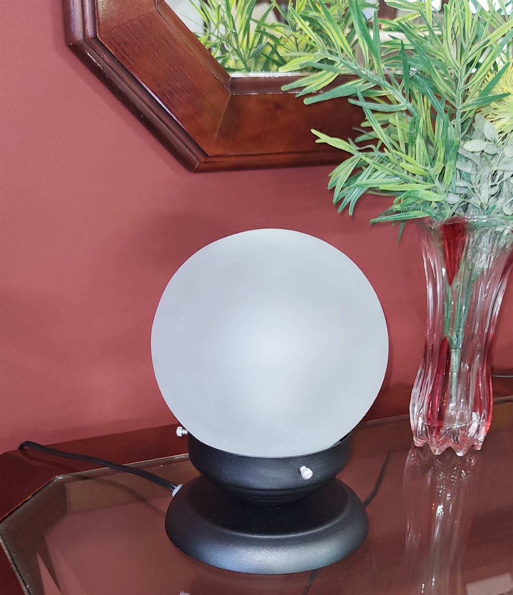 Abajur Bola de Cristal Preto Com Esfera 10x15 Leitosa