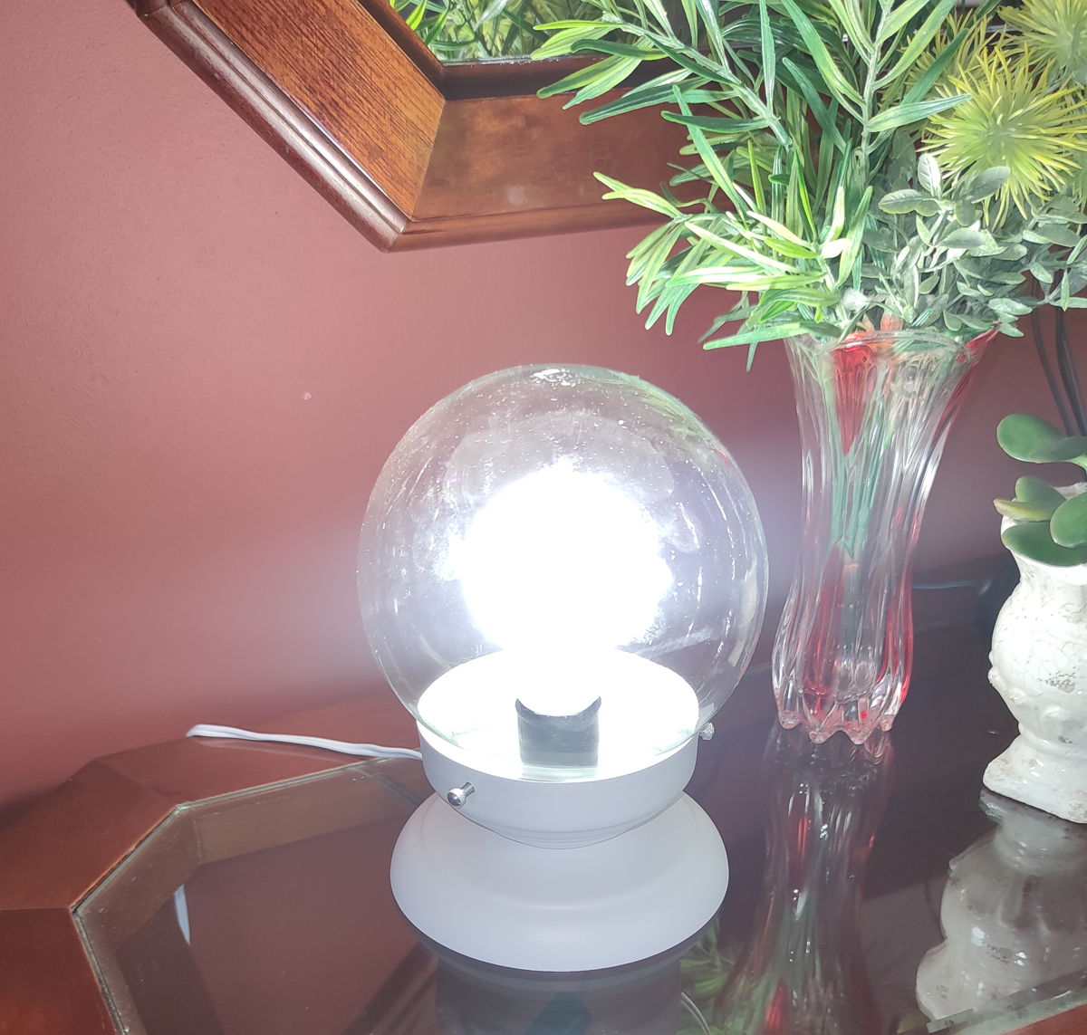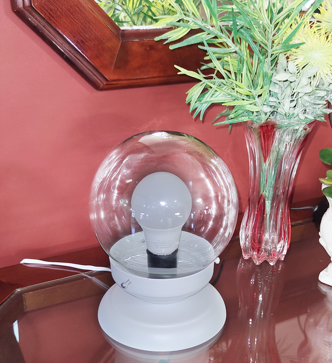 Abajur Bola de Cristal Branco com Esfera 10x15 transparente