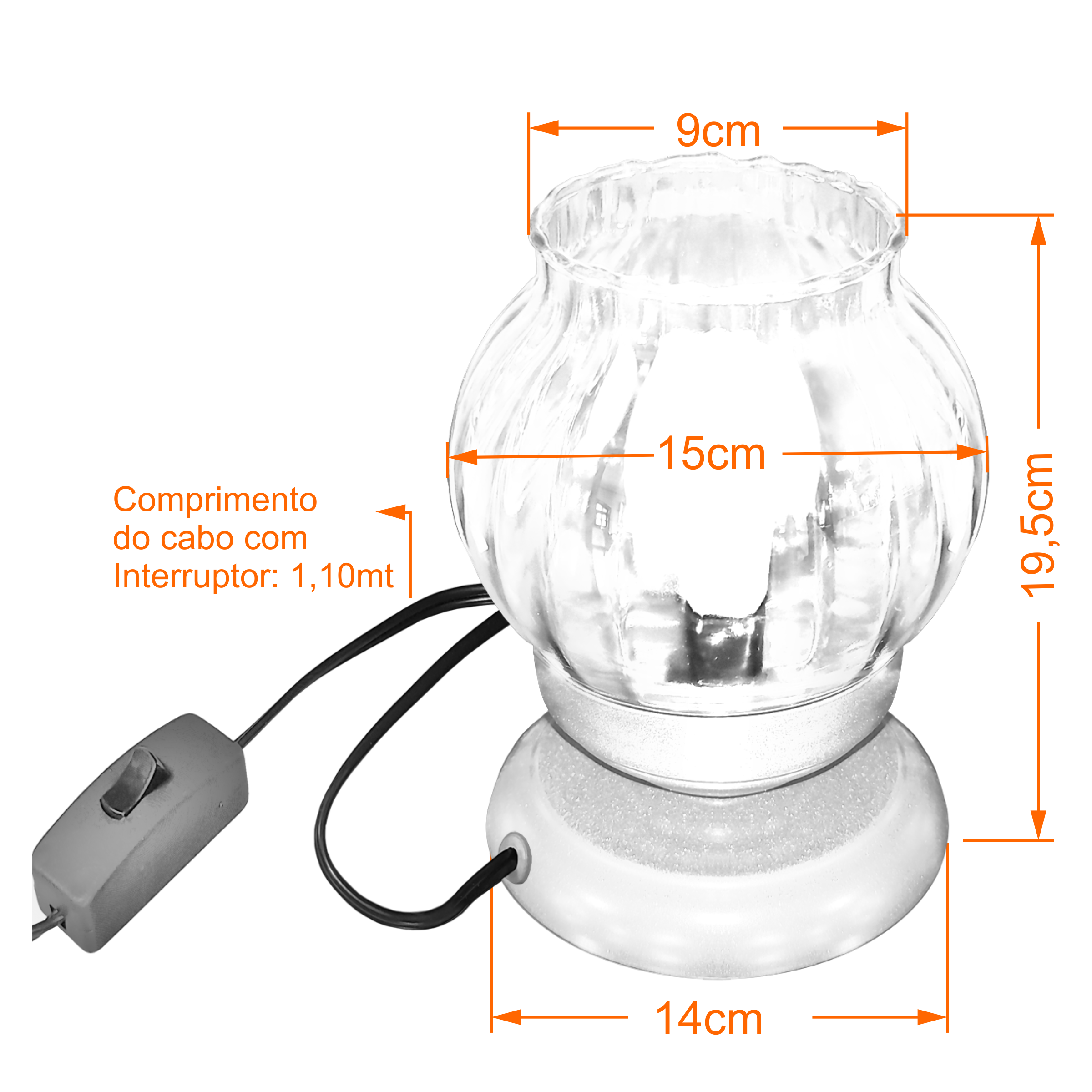 Abajur Bola de Cristal Branco Sem Vidro Kit