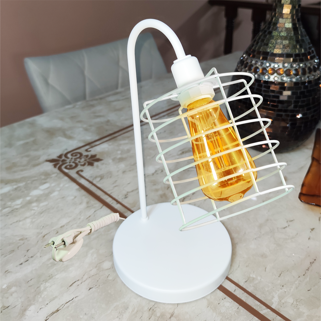 Luminária de Mesa Aramado Granada Branca