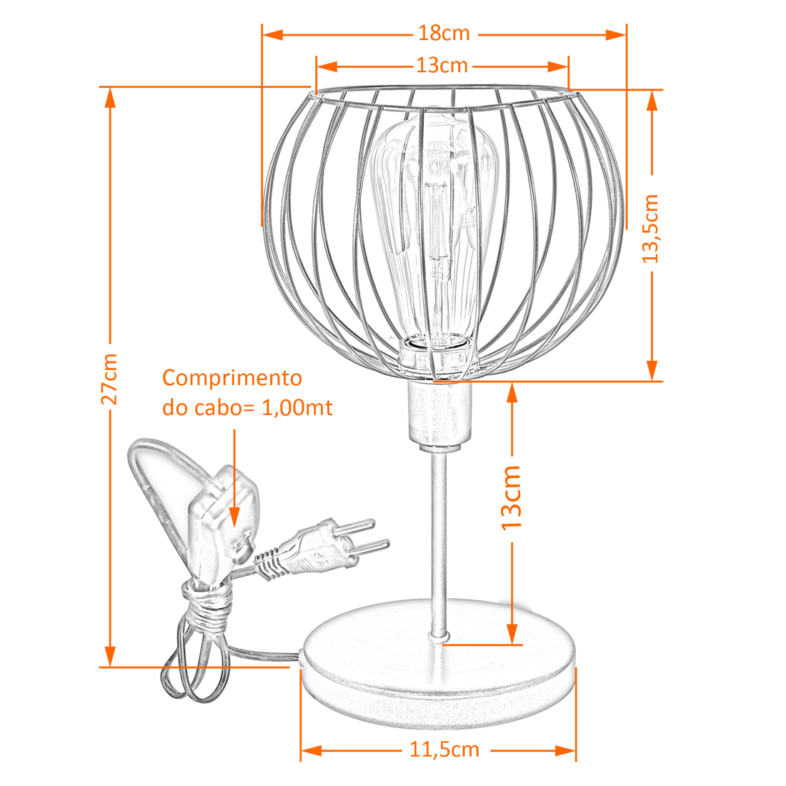 Abajur Mini Sem Aramado Preto Com Soquete Para Cupula