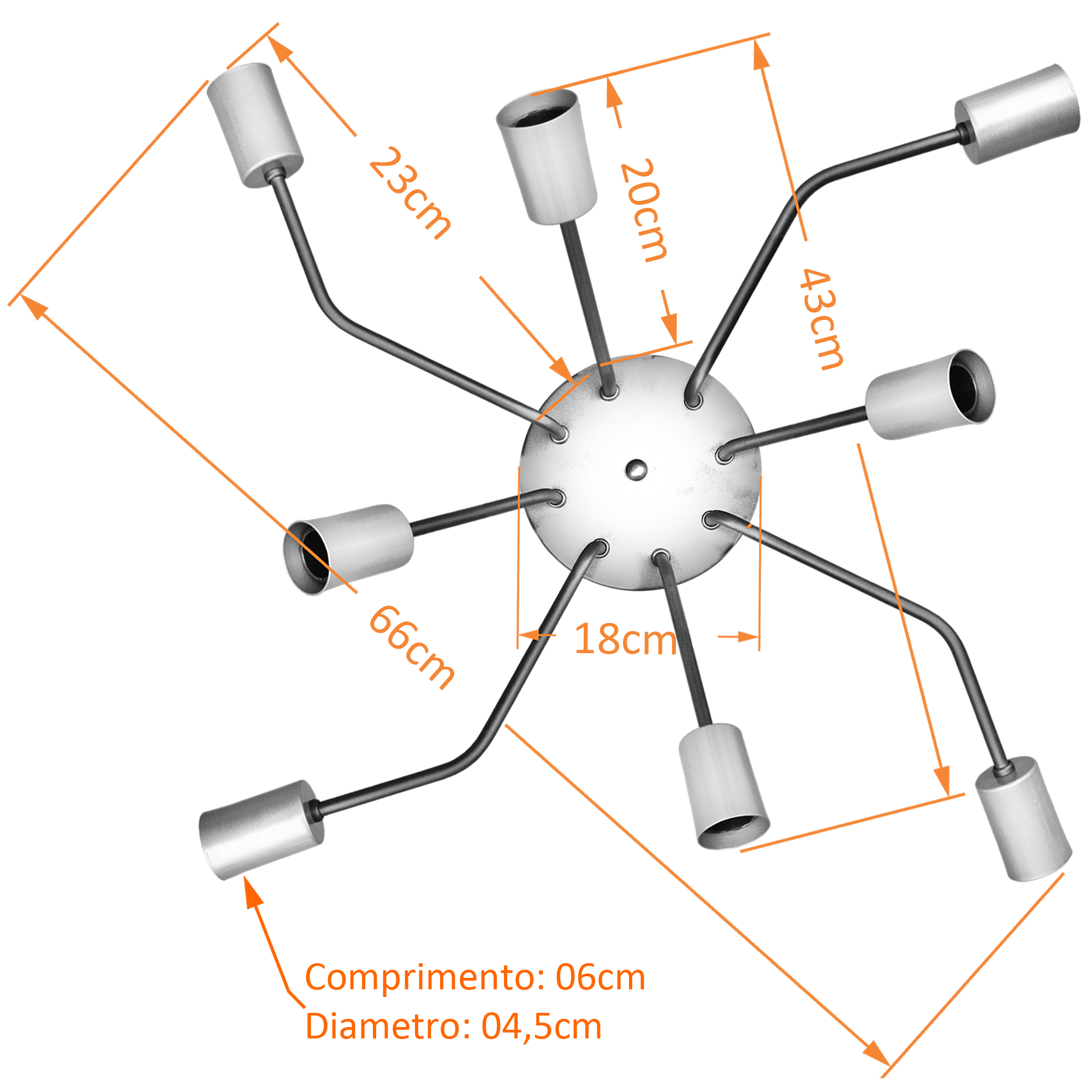 Lustre Sputnik Sirius Preto Com Preto com 8 Bracos