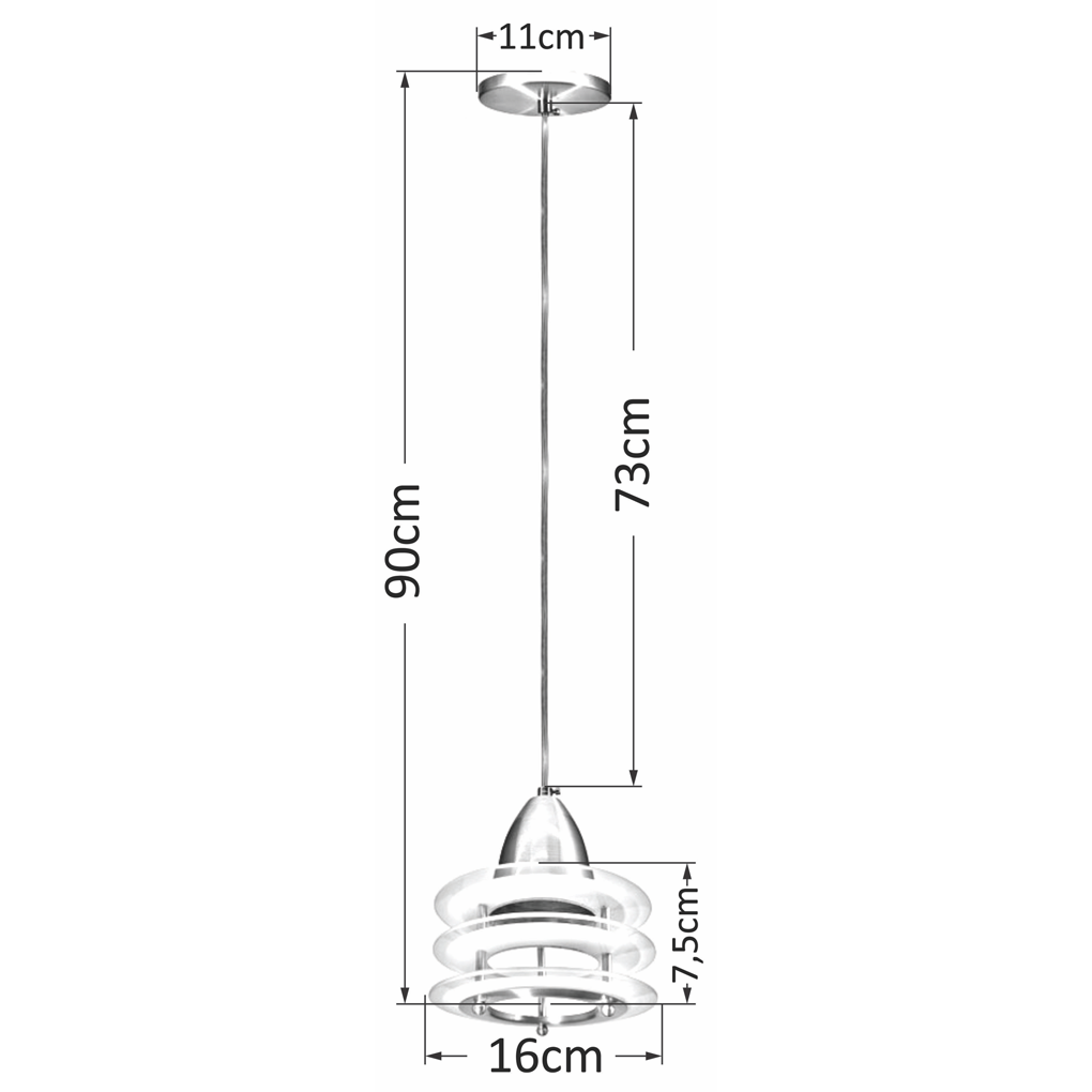 Lustre Pendente 3 Vidros Redondos Aluminio Escovado Mini
